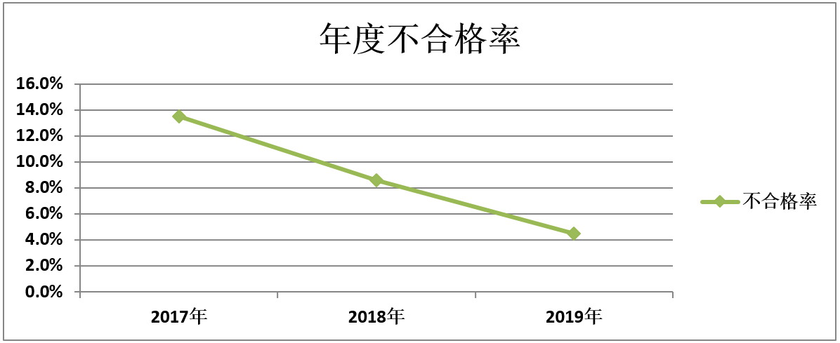 不斷修訂完善公司的《安全管理檢查考核辦法》和《公司現場管理制度》,每個月2次現場檢查考核,每季度召集車間主任以上參與現場檢查考核結果問題點審評,將考核成績和問題點公示在食堂大廳后面的看板上。組織相關部門對原2號車棚和西面臨時用地區(qū)域的臟亂差進行整治,重新規(guī)劃并劃分區(qū)域落實管理責任。賬票類檢查也落到實處,責任落到實處,處罰教育到位的原則,經過不懈努力,生產現場6S管理考核不合率從2017年的13.5%、2018年的8.6%,直至降至2019年的4.5%。
