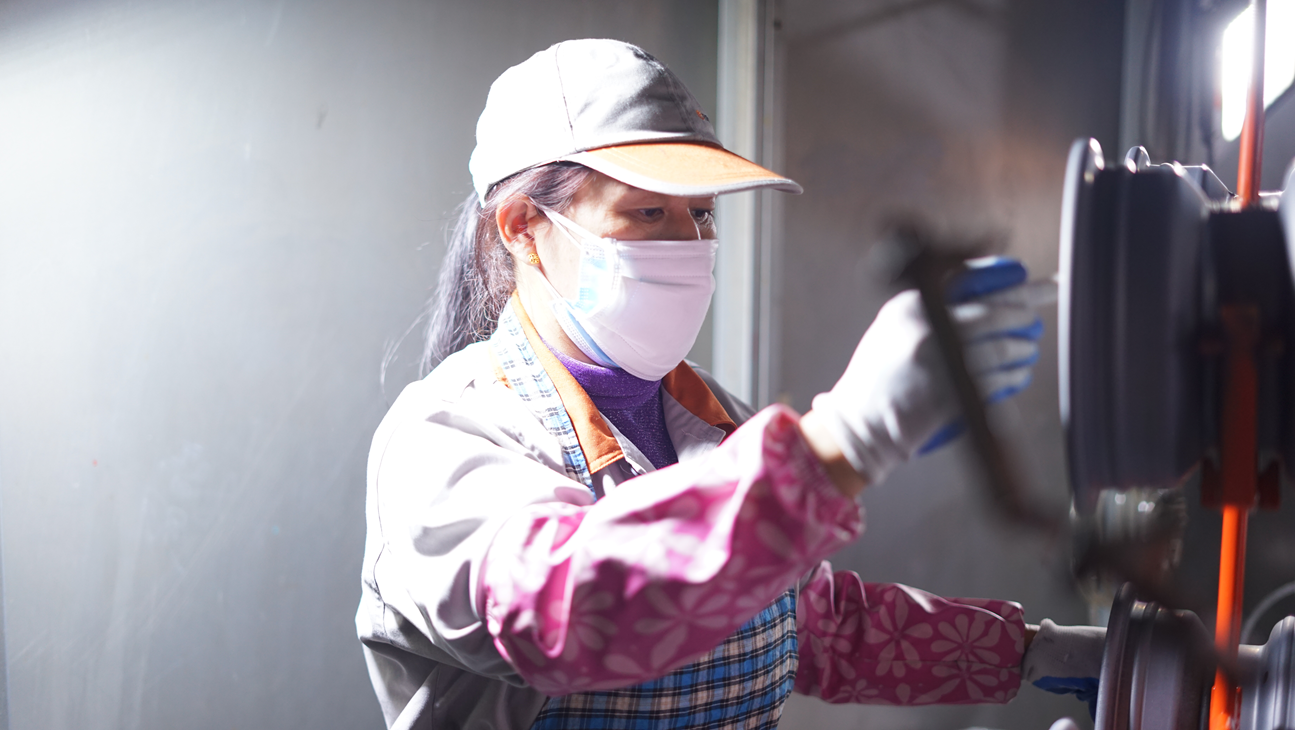 “剛開始進入崗位的時候,還是有些不太適應(yīng),只能強迫自己融入團隊,不斷提升自己技能,才能做好這個崗位。我在打磨產(chǎn)品的過程當中,也慢慢發(fā)現(xiàn)只有精益求精打磨出來的產(chǎn)品才能夠使下一道工序減少不良的產(chǎn)生,也給其他工序帶來一定的幫助,自己也感到很快樂。特別是在工作時幫助他人不斷提高工作質(zhì)量,不斷專研打磨技巧,怎么樣用最快捷最方便的打磨技巧打磨產(chǎn)品,感覺到自己的進步,于是慢慢的就喜歡上這份工作。”這是吳愛芳這份工作的簡單總結(jié)。