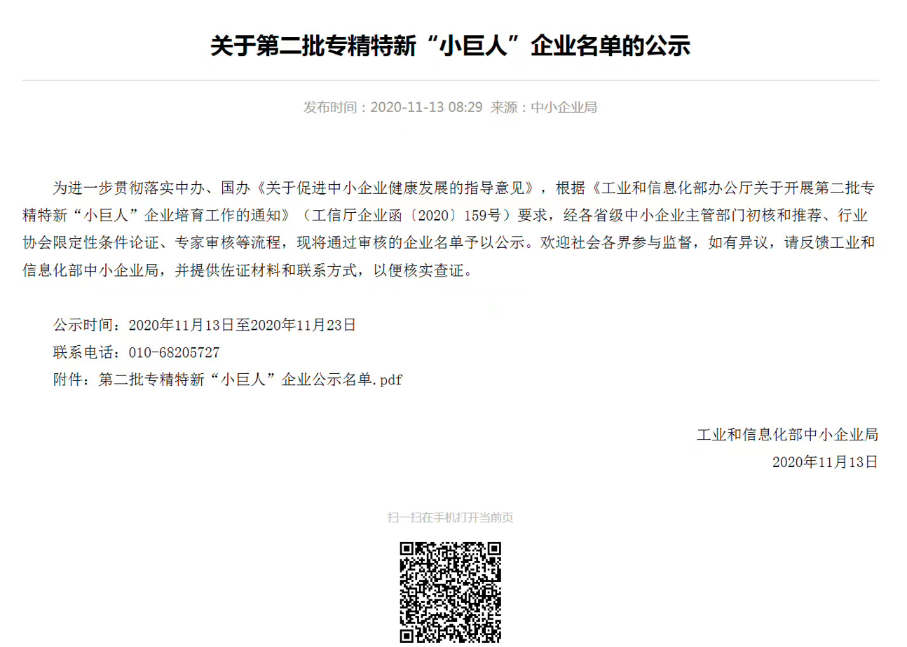 根據(jù)《關(guān)于組織推薦第二批國家級專精特新“小巨人”企業(yè)》文件通知要求,我司通過地方經(jīng)信推薦,符合申報要求,積極準(zhǔn)備相關(guān)資料上報,經(jīng)各地經(jīng)信部門初審、市級相關(guān)部門會審以及省級專家評審,我司順利通過評審,成功入選“國家級專精特新“小巨人”名單,取得國家級榮譽(yù)。