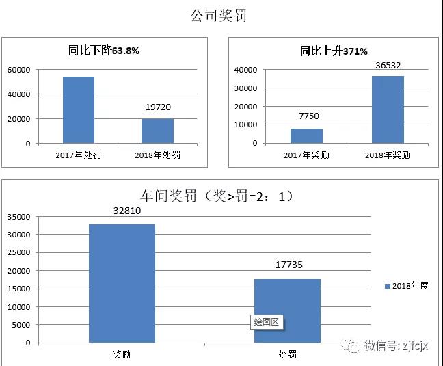 為了激勵員工時刻圍繞公司的核心價值觀,鼓勵員工奮發(fā)向上,促進企業(yè)不斷完善改進,做到獎罰分明,堅持以獎勵/處罰=2:1原則,公司制定了《公司獎罰管理制度》和《車間獎罰管理辦法》,雙管齊下,2018年相比2017年獎勵金額同比上升371%,處罰金額同比下降63.8%,違章次數(shù)同比下降69.7%,管理上有了很大的提升,數(shù)據(jù)體現(xiàn)如下:
