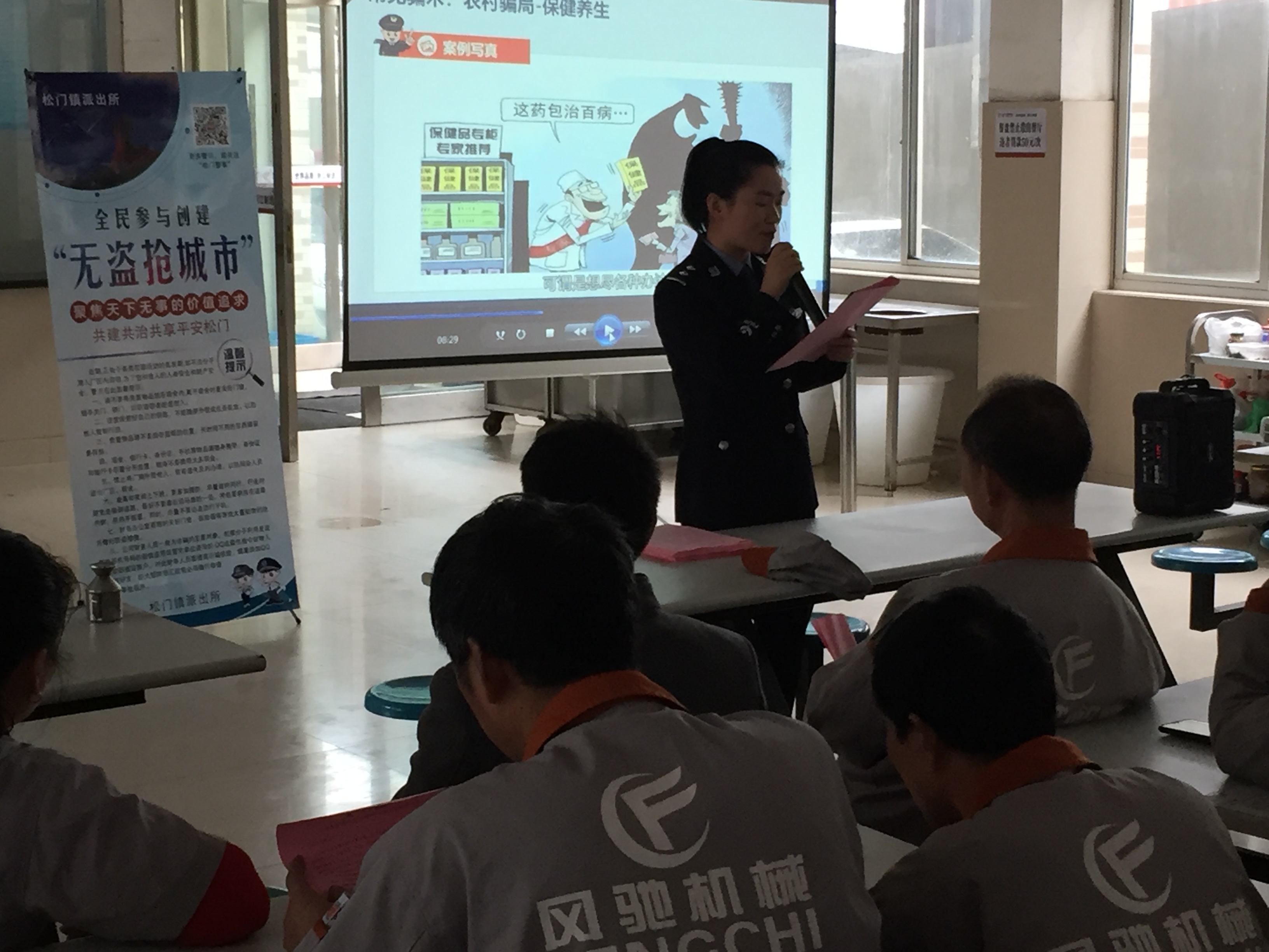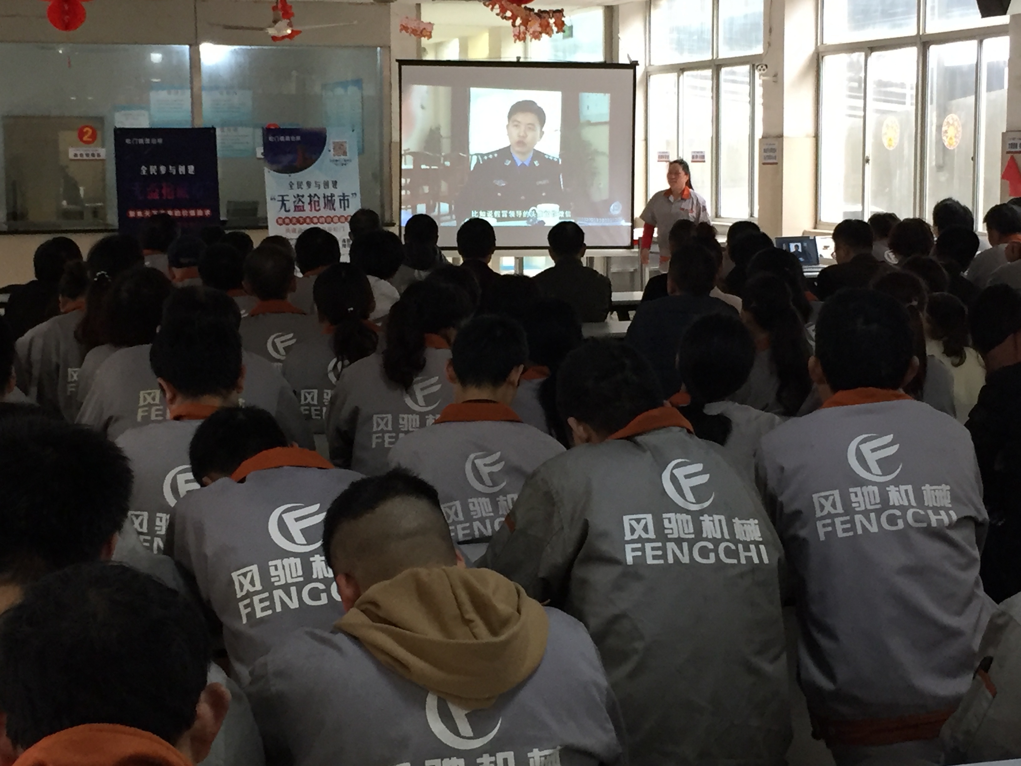 公司為了提高我企業(yè)員工的防盜、防強(qiáng)、防騙意識(shí),同時(shí)大力支持創(chuàng)建臺(tái)州市“無(wú)盜搶城市”宣傳活動(dòng),在2019年3月20日下午,我司誠(chéng)邀松門派出所人員前來(lái)給員工上了一堂防盜搶安全知識(shí)課,同時(shí)播放了創(chuàng)建“無(wú)盜搶城市”宣傳視頻。
